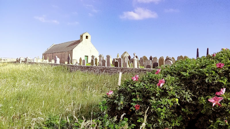 We recommend you take the Listening Walk around the churchyard and the surrounding area, as it contains some fascinating material [click for the full walk]. There is also more detail about the Kirk on our Churches, chapels and churchyards in South Ronaldsay and Burray page.